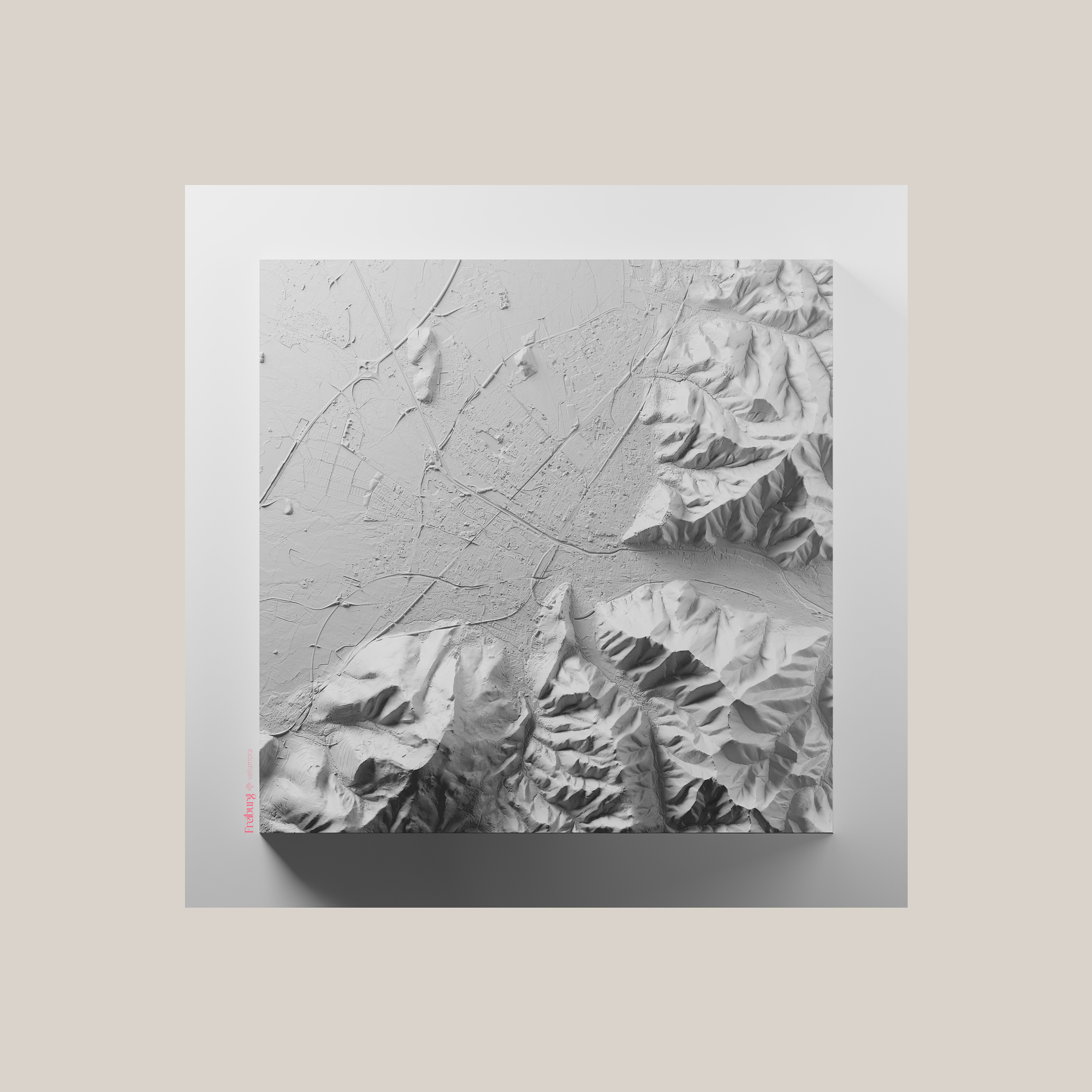 Gefertigt im Print-on-Demand. Jedes Motiv entsteht nach Bestellung, wird individuell produziert und direkt versendet. Hochauflösender Giclée-Druck auf 200 gsm Fine-Art-Papier in Museumsqualität mit glatter, matter Oberfläche. Die Darstellung nutzt gezielt gesetztes Licht, um die Reliefstruktur mit klaren Schatten zu betonen und die sichtbaren Formen Freiburgs hervorzuheben.